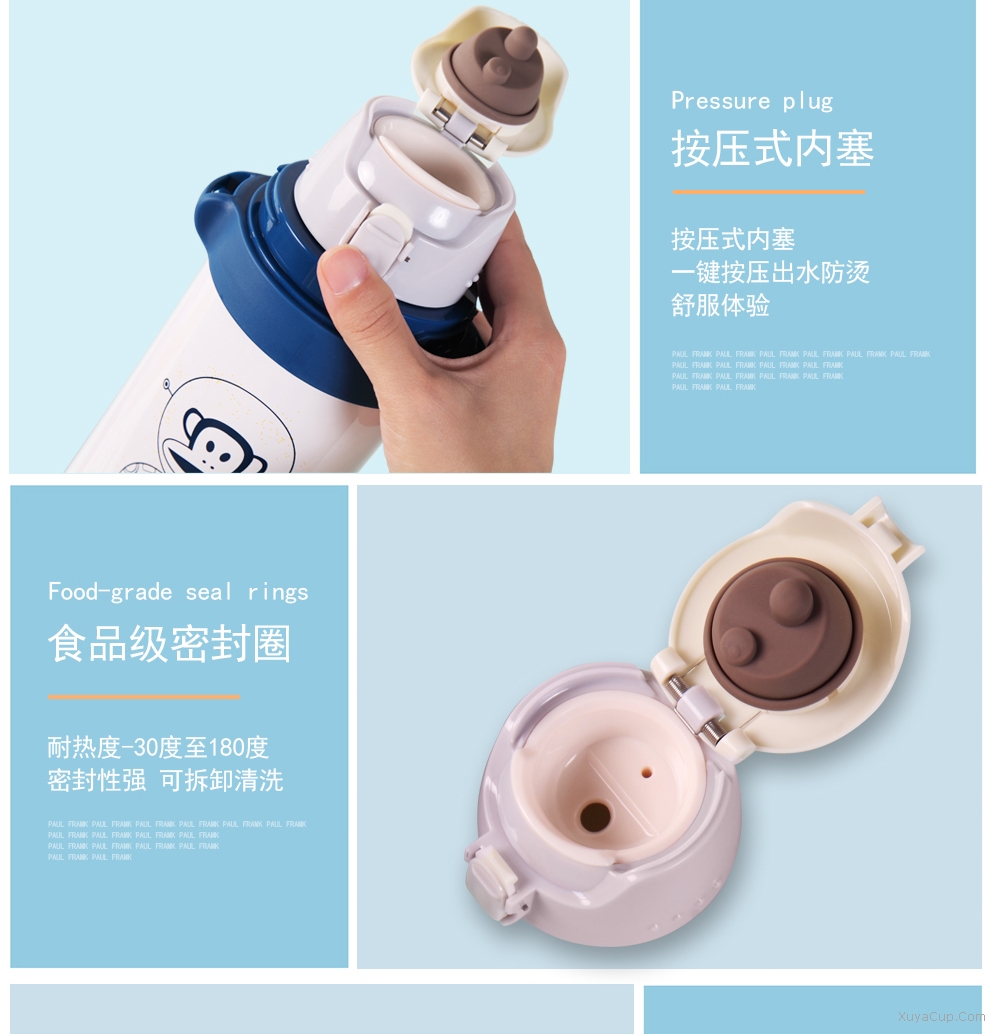 1.按壓式內(nèi)塞,一鍵按壓出水。 2.螺紋設計,擰旋更順暢。
