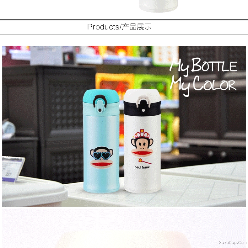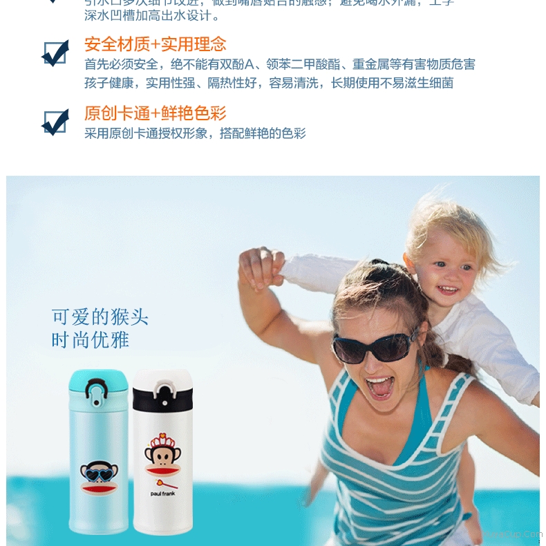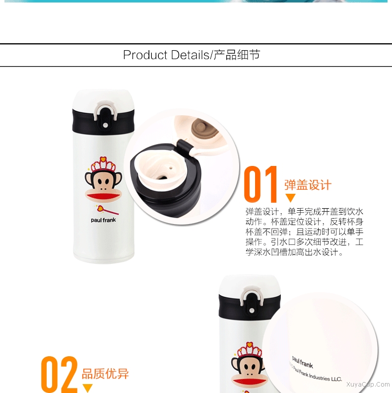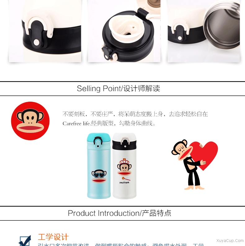 1.獨特彈跳杯蓋設(shè)計。 2.杯身一體式設(shè)計。
